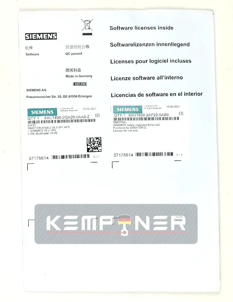 6AU1400-2QA20-0AA0-Z, Original Siemens, 2 GB Bootloader & Simotion licence