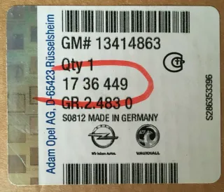 GM: 13414863, Opel: 1736449Passt nur bei identischer Teilenummer: